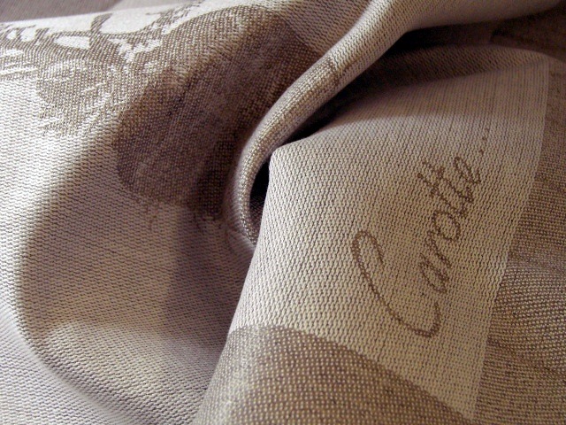お洗濯の際は、ジャガード織りのコントラストが薄くなってしまいますので、蛍光漂白剤等の含まれていない洗剤をご利用下さい。また、アイロンをかける時は裏側からお掛け下さい。