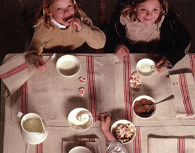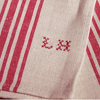 少し厚みのある生地に赤いクロスステッチがとっても可愛いリネンです。
