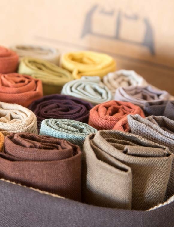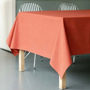 縦糸は亜麻、横糸は綿のハーフリネンタイプなので軽くて扱いやすいのが特徴で、ご家庭ではもちろん、スタイリッシュなレストラン等でもよく使われています。