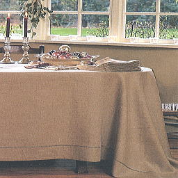 亜麻色のクラシックなベニスレース(梯子レース)のテーブルリネン。